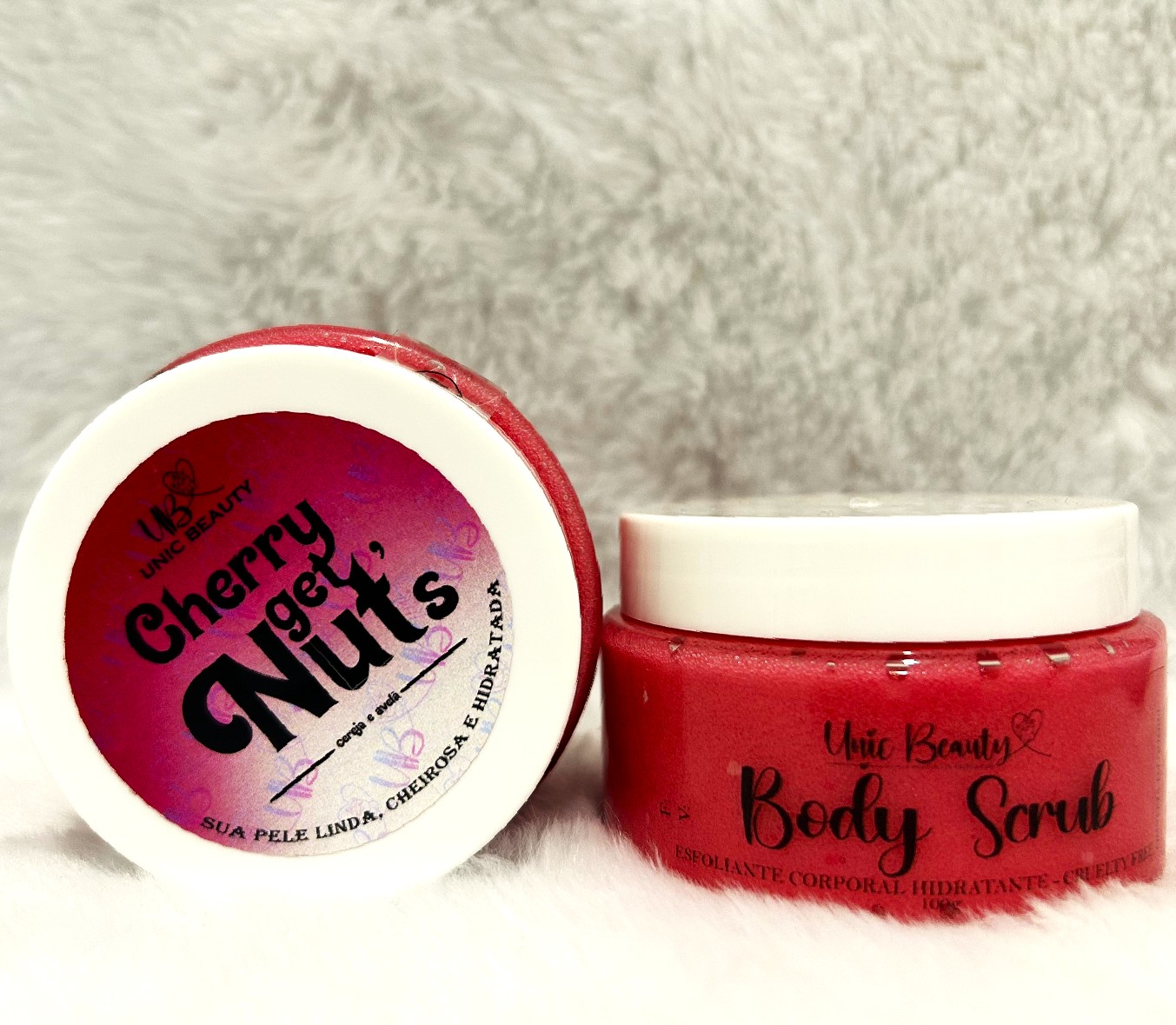 Esfoliante corporal com nossa fragrância de cereja e avelã